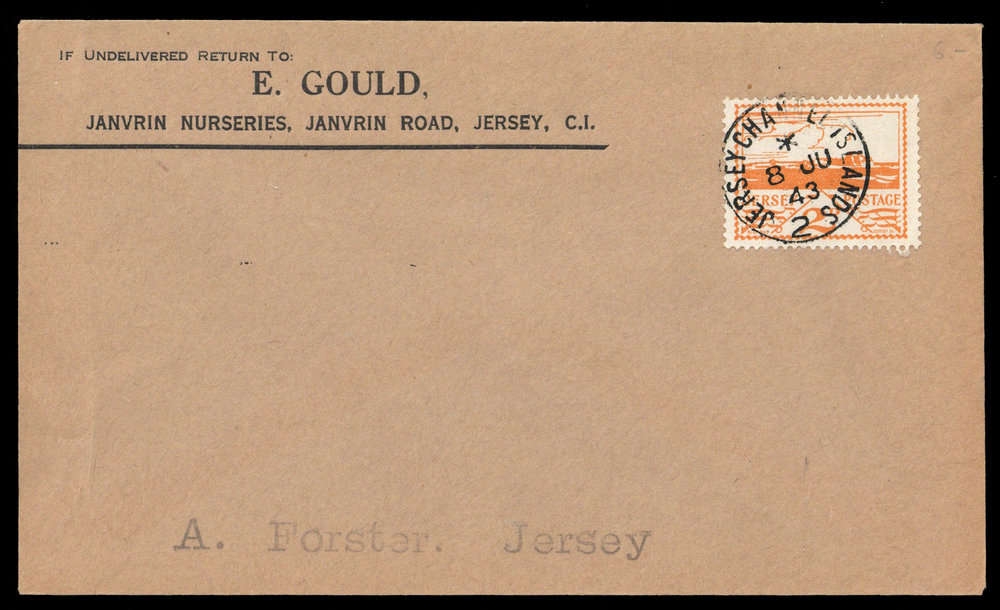 1943, 2 P. Ansichten auf FDC von JERSEY 8.6.43, adressiert nach Jersey.
