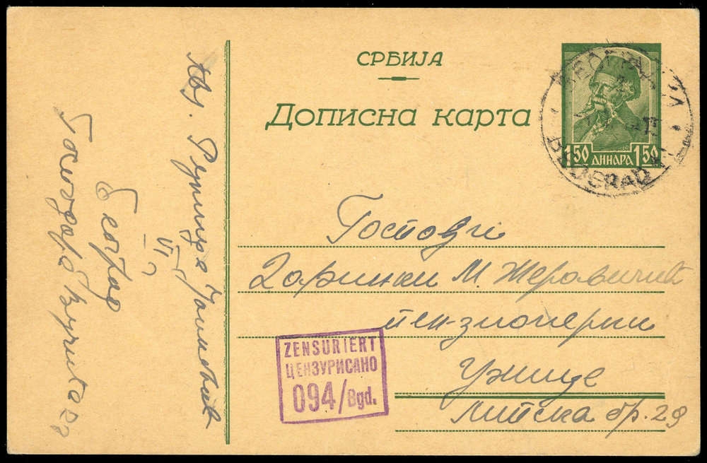 1943, 1.50 D. Karadzic von Belgrad mit Zensurstempel "Zensuriert 094/Bgd."