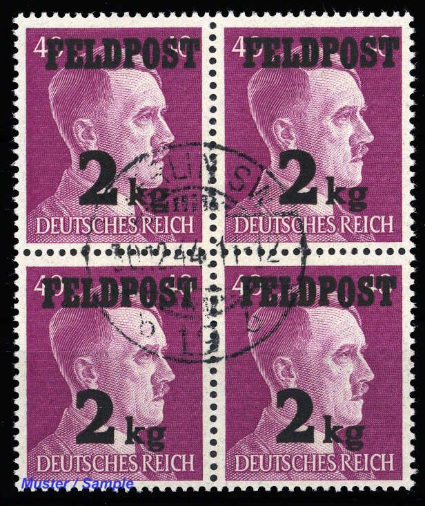 1944, 2 Kg. Feldpostmarke als 4-er Block mit Gefälligkeitsstempel (ME 18.-)