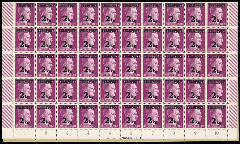 1944, 2 kg. Feldpostmarke im postfrischen gefalteten Bogen mit HAN "20592.44 1" (ME 270.-)