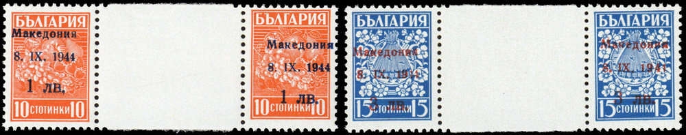 1944, 1 und 3 L. Freimarke in Type "II" als sauber postfrische Zwischenstegpaare (ME 900.-)