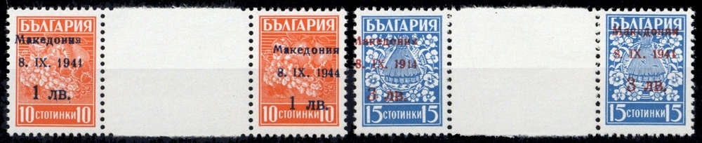 1944, 1 und 3 L. Freimarke in Type "II" als sauber postfrische Zwischenstegpaare (ME 900.-)