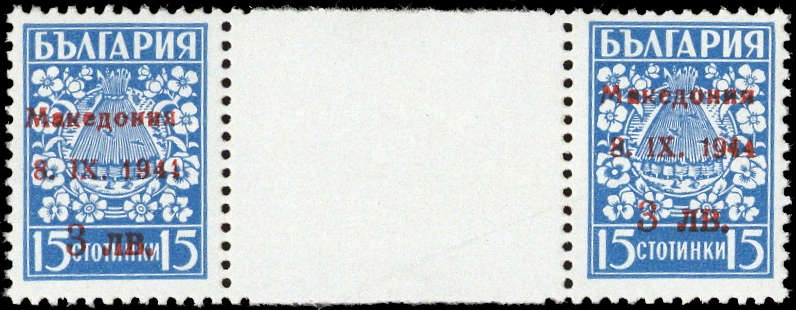 1944, 3 L. Freimarke mit Aufdruck in Type "II" als postfrisches Zwischenstegpaar (ME 600.-)