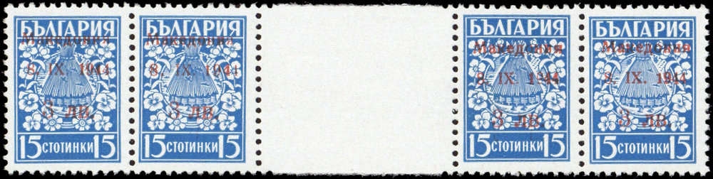1944, 3 L. Freimarke von Bulgarien mit Aufdruck in Type "II" als tadellos postfrisches Zwischenstegpaar (ME 600.-)