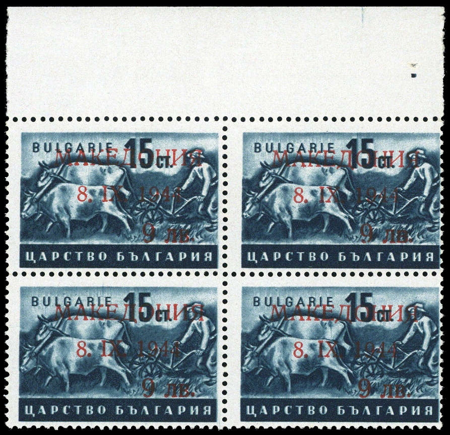 1944, 9 L. Freimarke mit Aufdruck "II" im postfrischen Oberrand 4-er Block
