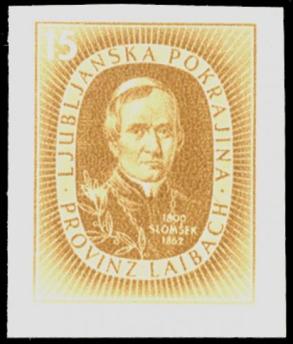 1945, Verdienter Slowene als ungezähnter Vorlagedruck in "lebhaftgelbbraun" auf ungummiertem Kartonpapier hergestellt, geprüft Ludin BPP (ME 300.-)