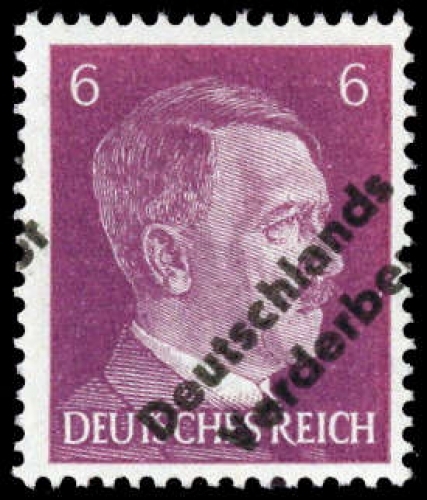 1945, 6 Pfg. Adolf Hitler postfrisch mit deutlich verschobenem Aufdruck