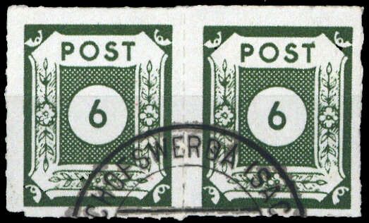1945, 6 Pfg. Ziffer Type "BIIa" im Paar gestempelt, geprüft Jasch BPP (ME 44.-)