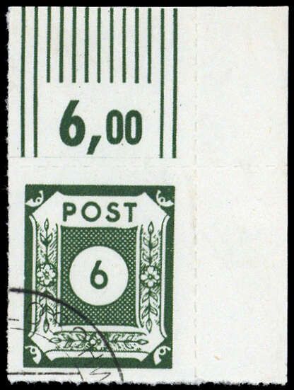 1945, 6 Pfg. Ziffer Type "G" gestempelte Bogenecke r.o., geprüft Ströh BPP
