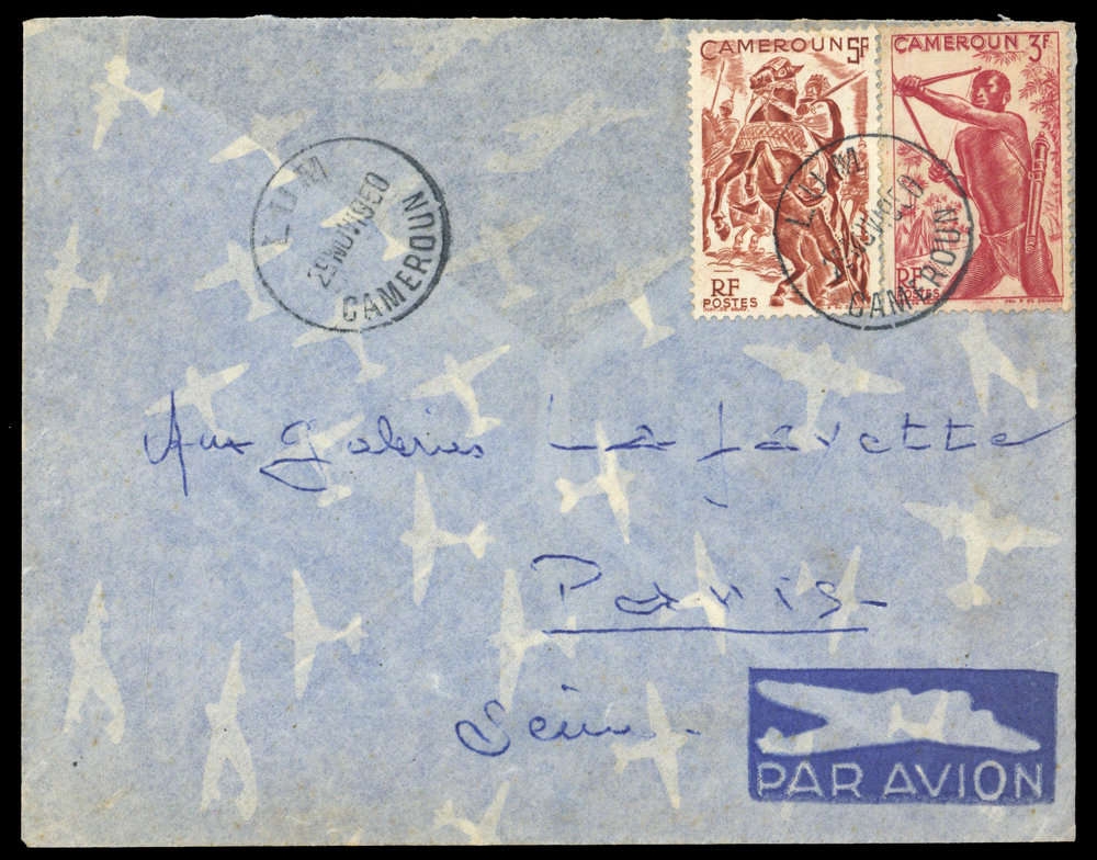 1946, 5 und 3 Fr Landesmotive, unregelmässige Zähnung, K1 "LUM 29 NOV 1950", Luftpostbrief, rs. ohne Lasche, Altersspuren, nach Paris