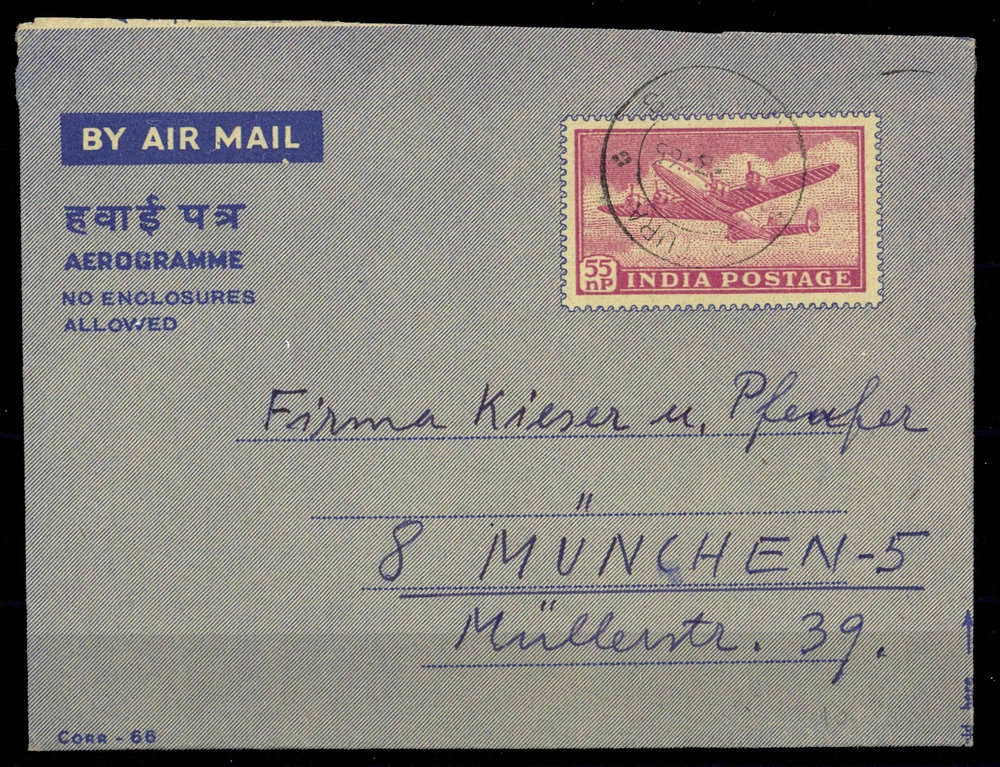 1947, ca., 55 P rot (Douglas DC 4), Aerogramm, K2 "TURA (21).3.65", Beförderungs- Öffnungsspuren, nach München