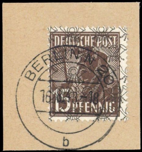 1948, 15 Pfg. Netzaufdruck auf Traum- Briefstückchen mit Berlin- Entwertung