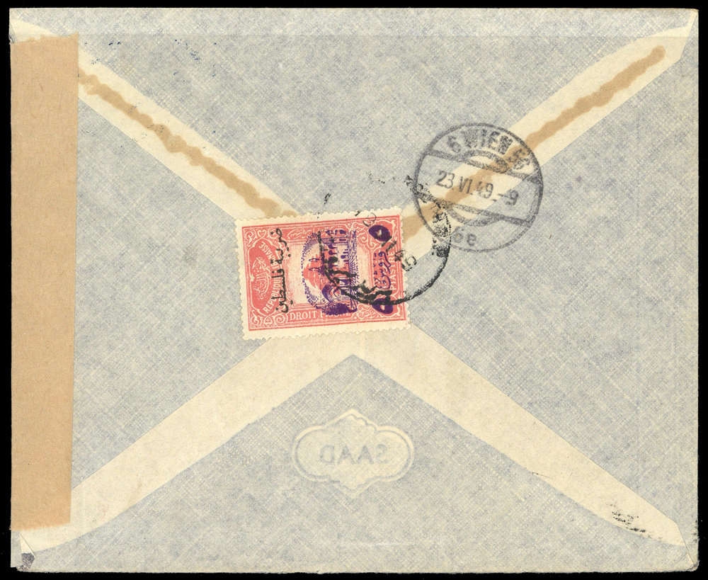 1948, 25 Pia Landschaft mit Mi.-Nr.422, 356 und rs. ZZ9, Luftpost-Zensurbrief, K1 "BEYROUTH 18 VII 49", Beförderungsspuren, nach Wien