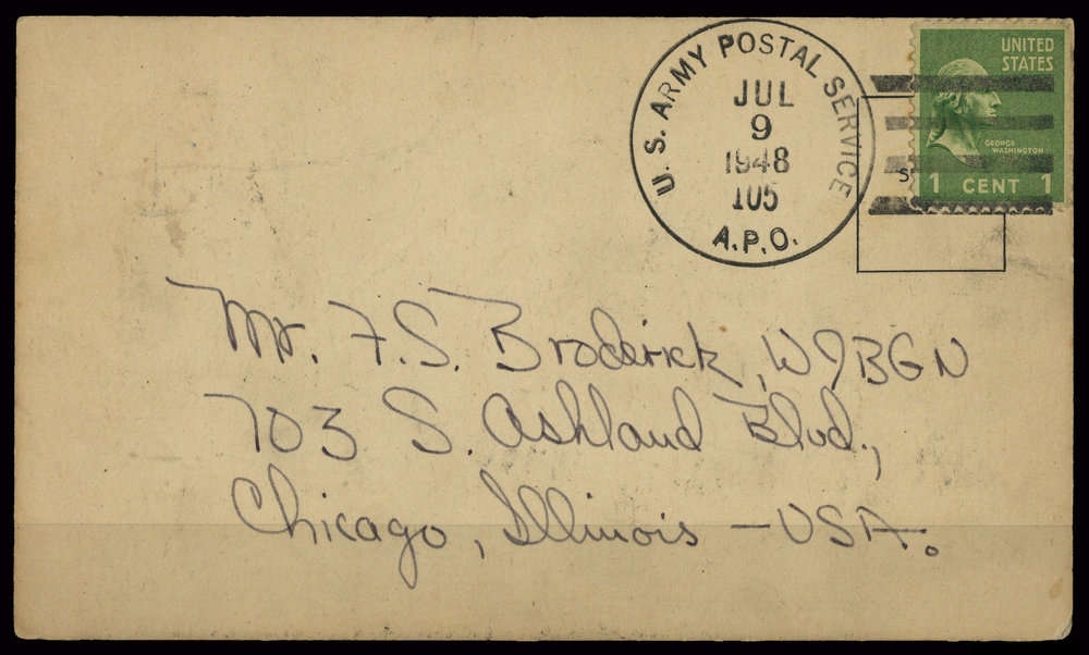 1948, "US ARMY POSTAL SERVICE JUL 9 1948", M-Stpl., Postkarte "ROUTS OF THE PACIFIC DIVISION", Zusatz Johnston Island (Atoll), Militärbasis, Marke Mgl., Beförderungsspuren