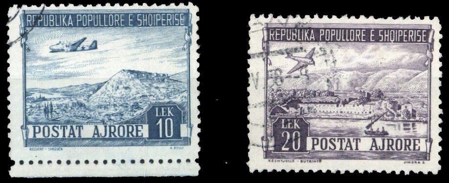 1950, 10 und 20 L. Landschaften, gestempelt