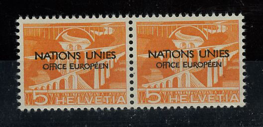 1950, 5 C. Landschaft im postfrischen Paar mit einmal dem Plattenfehler "Mittelstrich des F fehlt" (ME 50.-)