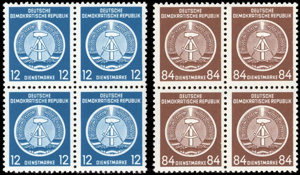 1954, 17 Werte Dienstmarken komplett tadellos postfrisch als 4-er Block Satz (ME 1.040.-)