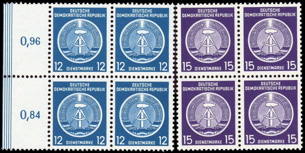 1954, 17 Werte Dienstmarken komplett als sauber postfrischer 4-er Block Satz (ME 1.000.-+)