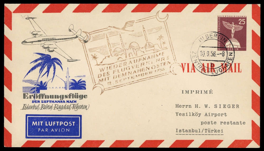 1956, LH-Erstflugbrief Berlin-Istanbul 12.9.56