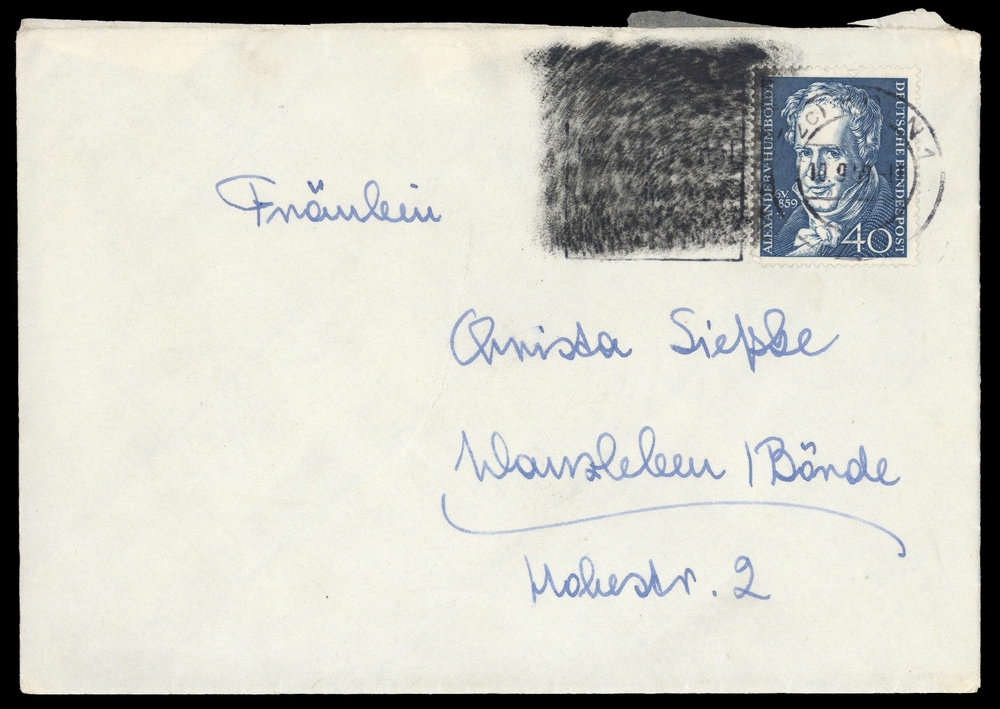1959, 40 Pfg. Humboldt (Eckfehler) auf Brief mit Maschinenwerbestpl. "KÖLN 10.9.57" (WERBEZUSATZ GESCHWÄRZT) nach Wanzleben / DDR, oben leichte Öffnungsspuren.