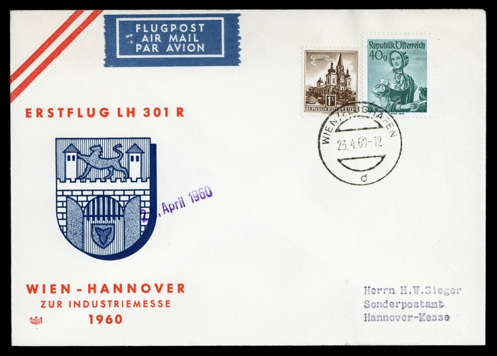 1960, LH-Erstflugbrief Wien-Hannover 23.4.60