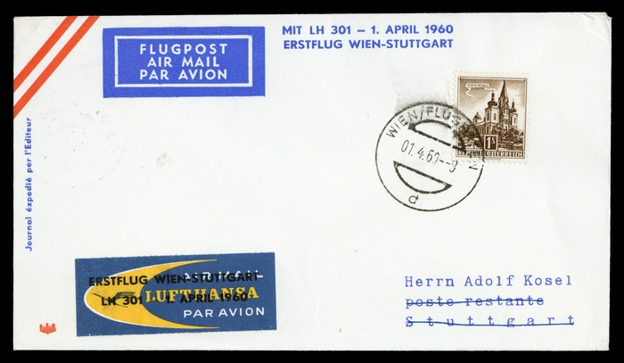1960, LH-Erstflugbrief Wien-Stuttgart 1.4.60