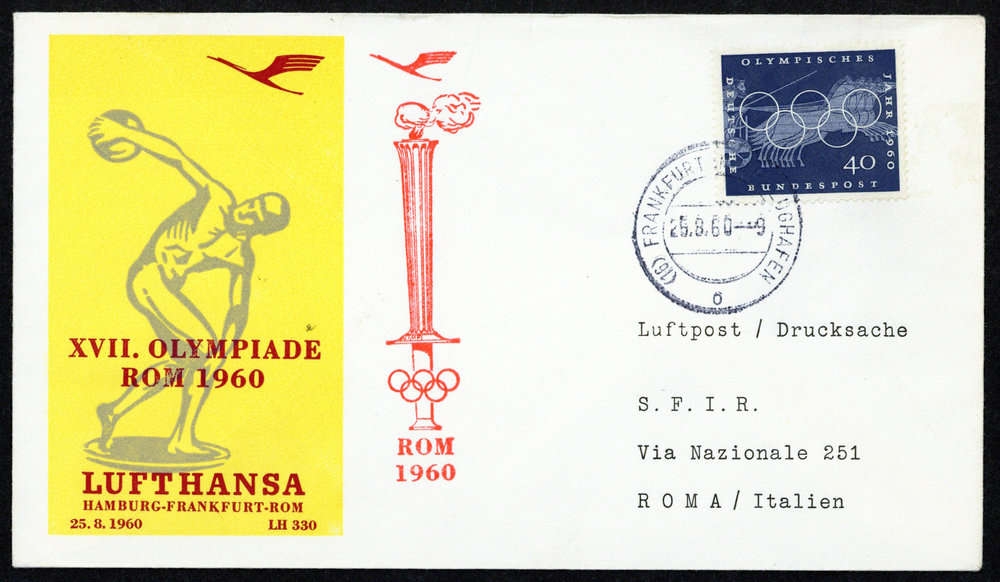 1960, LH-Olympia-Sonderflugbrief Frankfurt-Rom 25.8.60