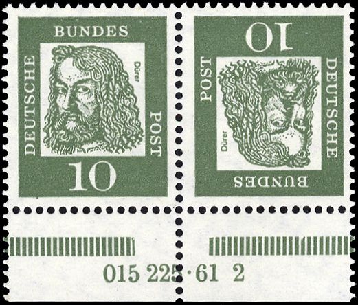1961, 10 Pfg. Dürer als postfrischer Kehrdruck mit HAN 015225.61 2. Nur 1x im Bogen vorkommend!