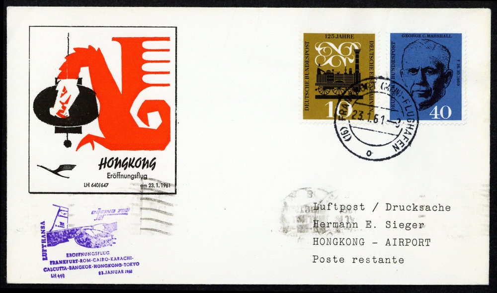 1961, LH-Erstflugbrief Frankfurt-Hongkong 23.1.61