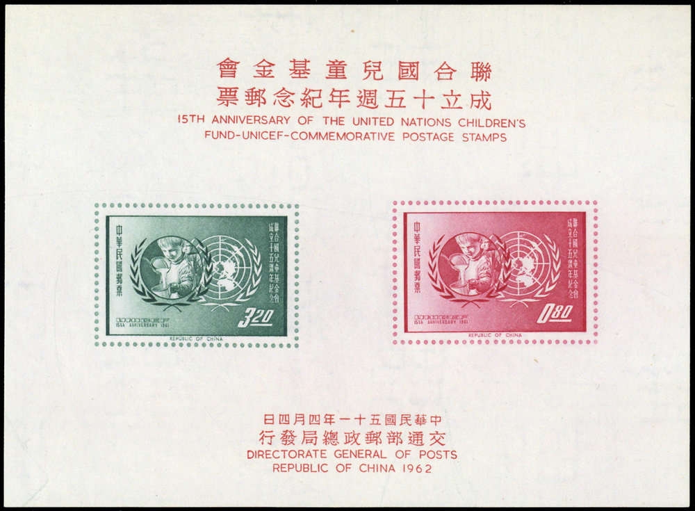 1962, Blockausgabe "15 Jahre Kinderhilfswerk der Vereinten Nationen (UNICEF)" in Originalgrösse postfrisch