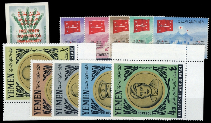 1963/65, 3 postfrische Ausgaben, Nr. 47 B aus Satz, 52-56 A und 202-06 A (ME 20,-)