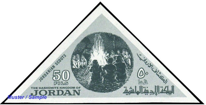 1964, 7 Werte "Pfadfinder" als geschnittener Satz Dreiecksmarken postfrisch (ME 60.-)