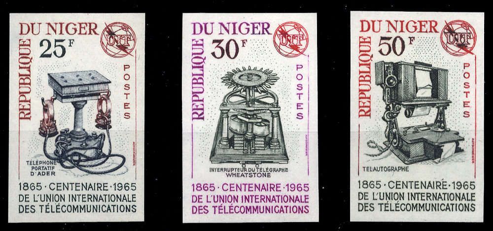 1965, 3 Werte Fernmeldeunion als ungezähnter Satz postfrisch