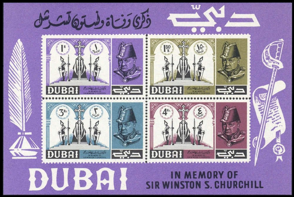 1966, Blockausgabe "1. Todestag von Winston Spencer Churchill (1874-1965): Ehrenwache am Sarge, Churchill in Admiralsuniform" in Originalgröße postfrisch