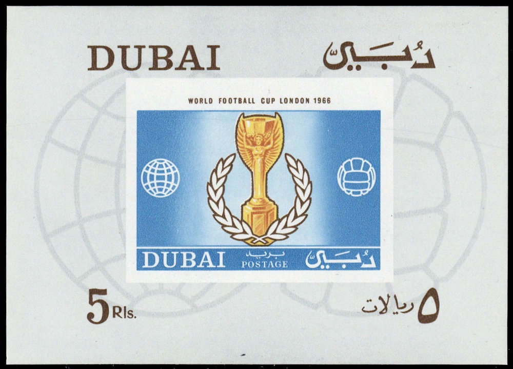 1966, Blockausgabe "Fußball-Weltmeisterschaft, England: Jules-Rimet-Pokal" in Originalgröße postfrisch in der Type 'B'