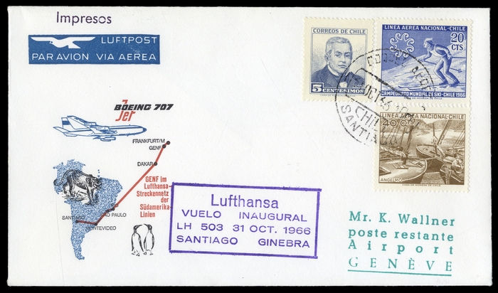 1966, LH-Erstflugbrief Santiago de Chile-Genf 31.10.66 mit Chile-Frankatur