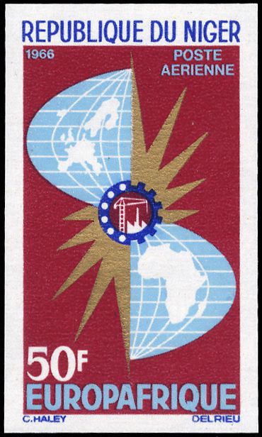 1966, 50 Fr. Organisation als dekorative ungezähnte Marke postfrisch