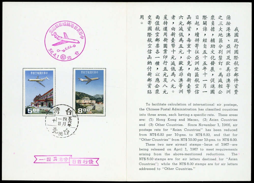 1967, Erstflüge in Postverwaltungs-Faltkarte mit rotviolettem Nebenstempel