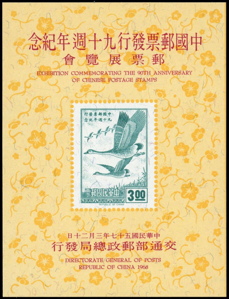 1968, Blockausgabe "90 Jahre chinesische Briefmarken" in Originalgrösse postfrisch