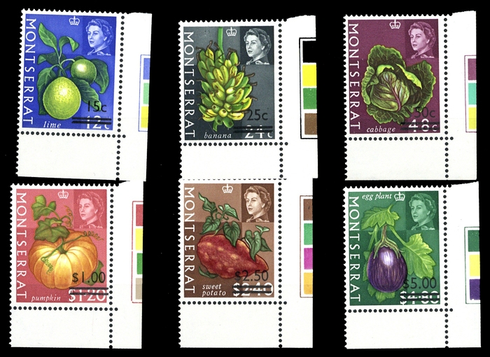 1968, 6 Werte Früchte mit Überdruck komplett in postfrischer Erhaltung