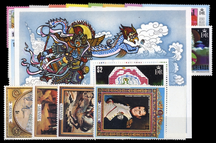 1972/74, 5 postfrische Ausgaben, Nr. 413-16, 422-27, 516-23, 589-96 und Block 28 (ME 21,-)