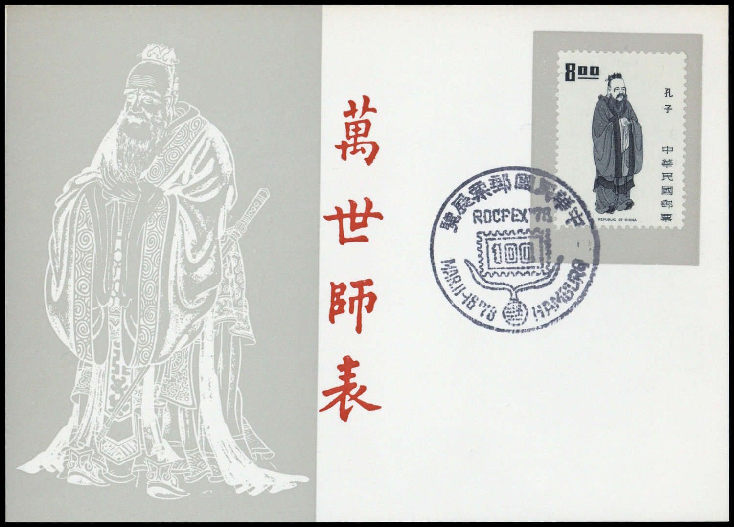 1973, 8 D Konfuzius mit Austellungs-SST "ROCPEX 78 MAR 18 78 HAMBURG", auf Sonderkarte Konfuzius
