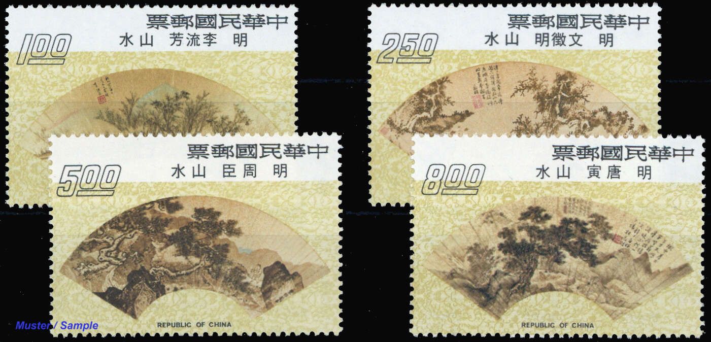 1975, 4 Werte Chinesische Landschaftsgemälde auf Faltfächern komplett in postfrischer Erhaltung