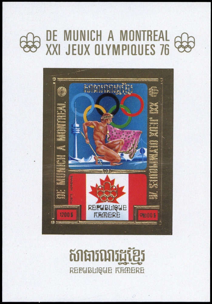 1975, Blockausgabe "Olympische Sommerspiele 1976, Montreal: Herkules; Olympiagelände mit Fernsehturm, München; Nationalflagge von Kanada" in Originalgröße postfrisch in der Type 'B'