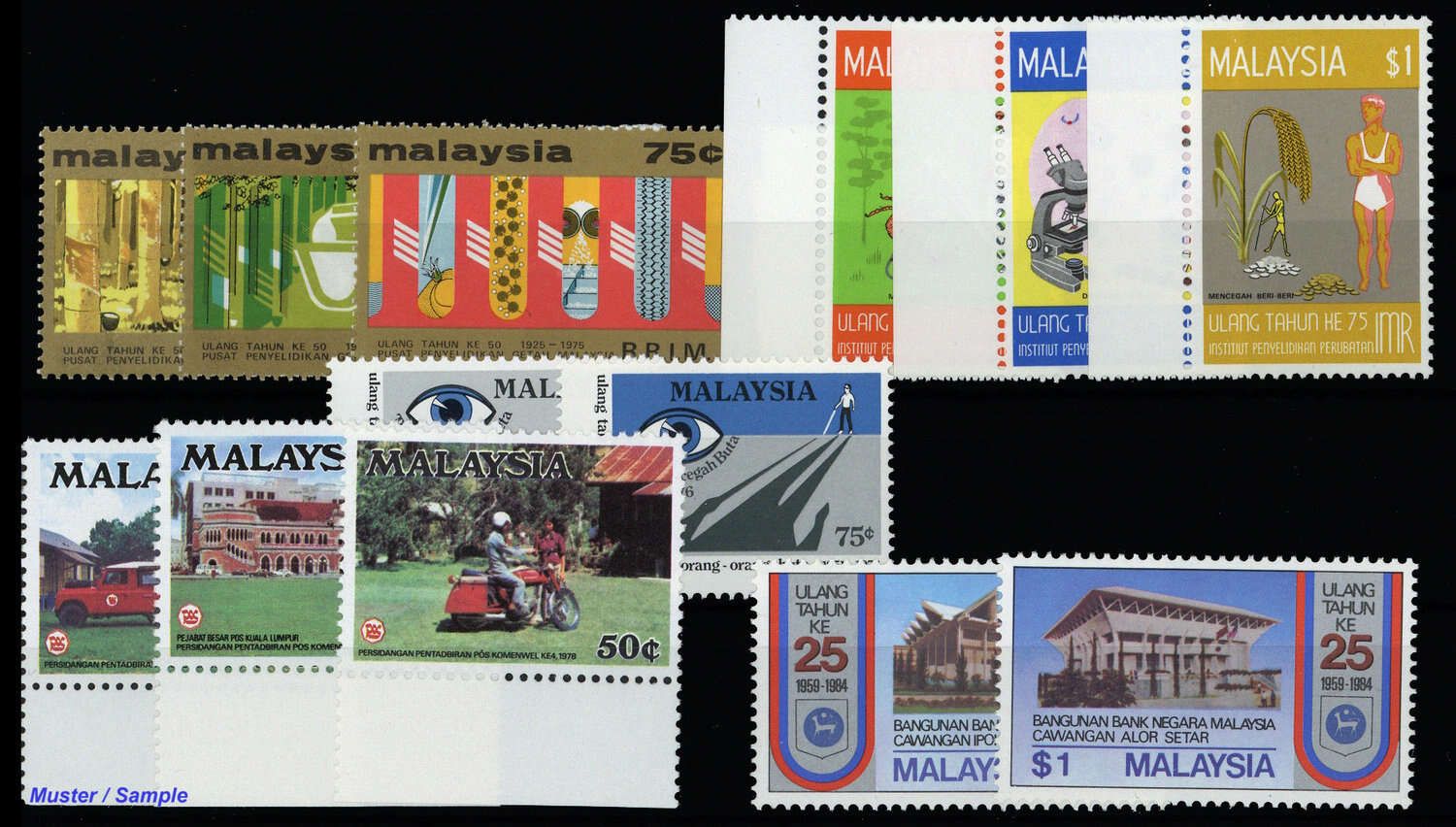 1975, 5 postfrische Sätze komplett: MiNr.140-42, 145-47, 1578-58, 173-75 und 273-74 (ME 22.-)