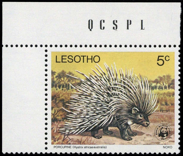 1977, 5 C. WWF "Bedrohte Tiere" als postfrische Bogenecke l.o. mit Bogenzählnummer