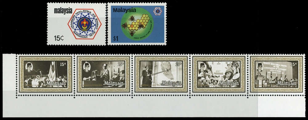 1977/78, 2 postfrische Sätze, Nr. 159-63 Fünferstreifen und 176-77 (ME 20,-)