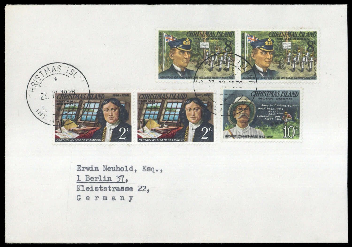1977, 2 (2), 8 (2) und 10 C Besucher auf Brief mit K1 "CHRISTMAS ISLAND 23.12.1978" auf Brief nach Berlin