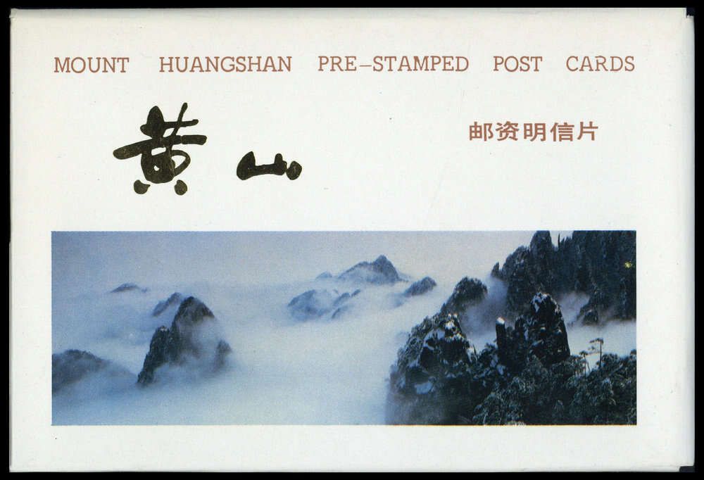 1978, ca., 4 F Bild-Postkarten (10 verschiedene Motive Mount Huangshan im hellbraunen Umschlag) ungebraucht