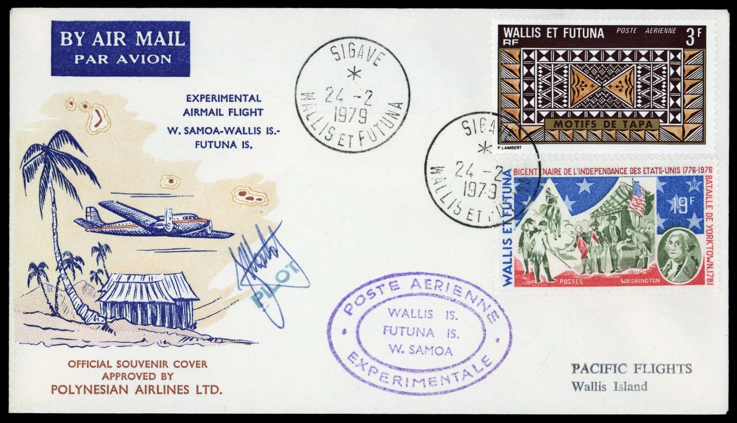 1979, Versuchsflug-Brief Futuna-Wallis 24.2.79 ab Sigave mit 3 Fr. Tapa und 19 Fr. Washington und Pilotenunterschrift